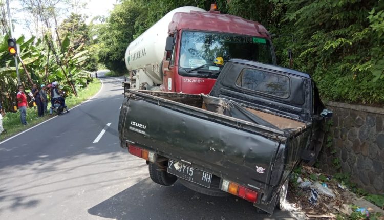 wartapriangan.com, BERITA BANJAR. Mobil pick up jenis Panther bernomor polisi Z 8715 HH, terlibat tabrakan dengan mobil tangki gas elpiji bernomor polisi B 9989 VQ, di Jalan Raya Banjar – Cimaragas, tepatnya di Blok Tanjakan Junti (Batu Gajah), Kota Banjar, Senin (06/05/2019) sekitar pukul 12.30 WIB siang tadi.