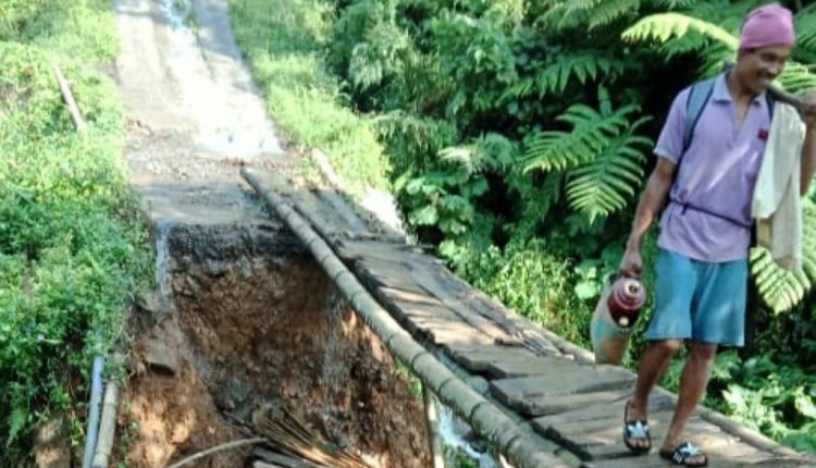 “Kami bersama warga berinisiatif membangun jembatan sementara, namun kemarin sempat ambruk lagi karena tidak bisa menahan derasnya air sungai. Terpaksa kami membangun kembali jembatan alternatif sederhana yang terbuat dari pohon kelapa dan rautan bambu,” tuturnya.