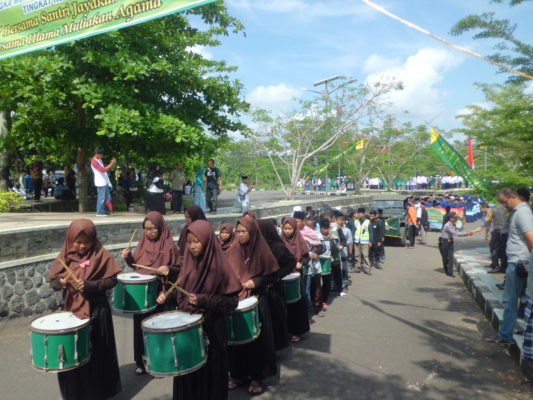 Mengambil start dari Halaman Pusdai Kota Banjar, ribuan santri bersama Ketua Forum Pondok Pesantren (FPP) Kota Banjar, H. Badar Ismail, SH.I., Kepala Kemenag Kota Banjar, Drs. H. Undang Munawar, M.Pd., Wakapolres Kota Banjar, Kompol Drs. Ade Najmulloh, Kabag Kesos Setda Kota Banjar, Drs. H. Kaswad M.Pd.I., dan para pengasuh pondok pesantren, berjalan kaki menuju Tanam Kota Lapang Bakti, Kota Banjar.